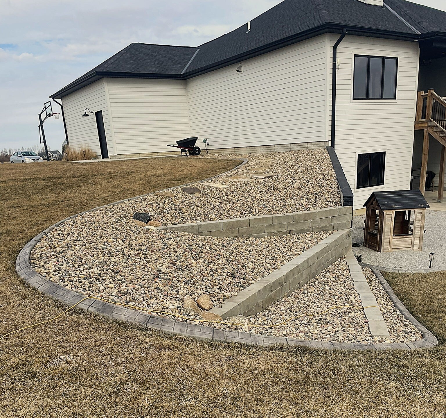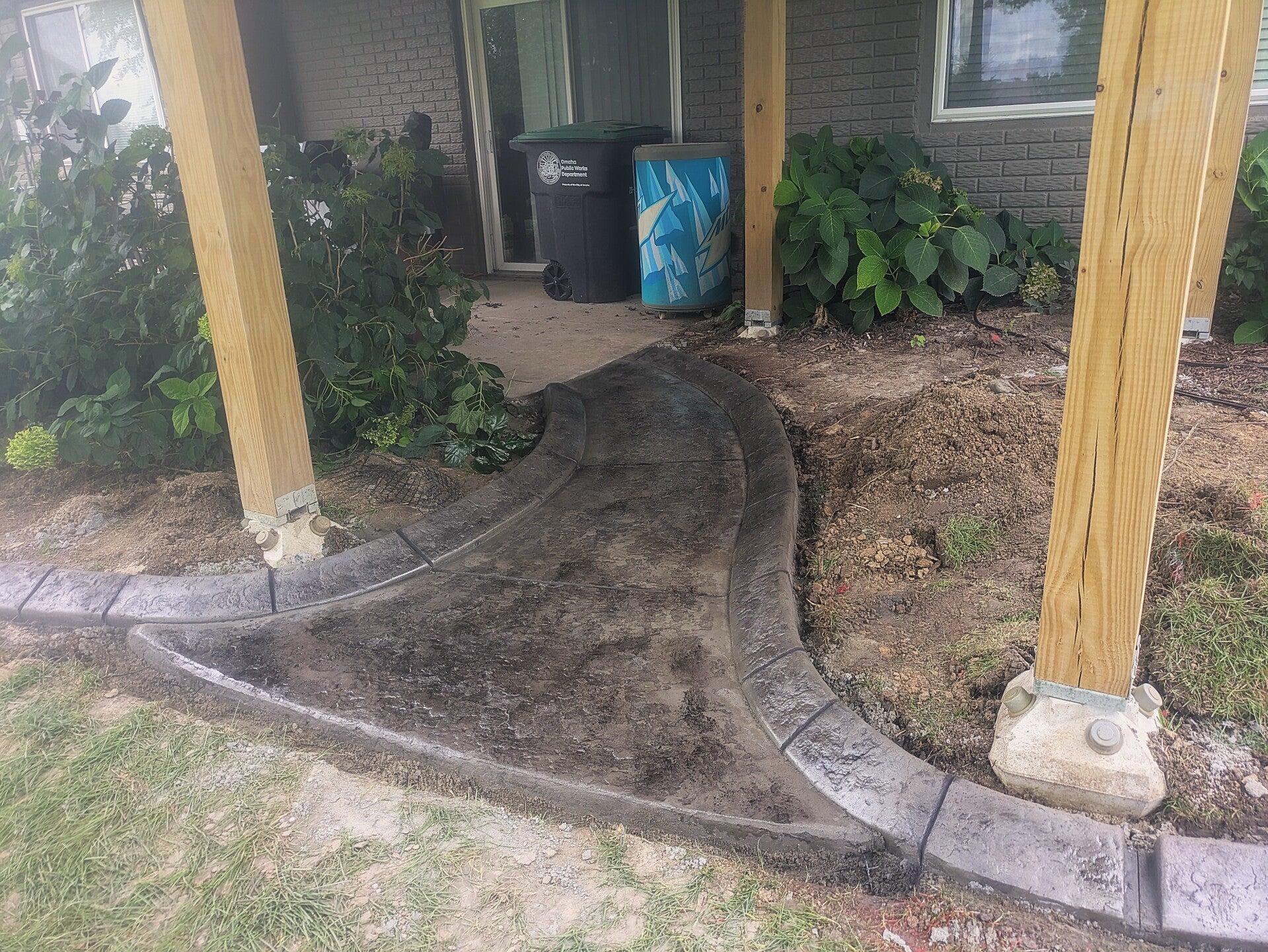 Most People don't realize there is another function of curbing that often gets overlooked. Did you know curbing and our tailored designs also solve many water and drainage issues. And, why not give a solution multiple purposes? This spillway solved a major drainage issue around this client's deck at his walkout basement. Curbing will control the flow of water around your property. This spillway also provided a nice pathway to the backyard which was not possible before.