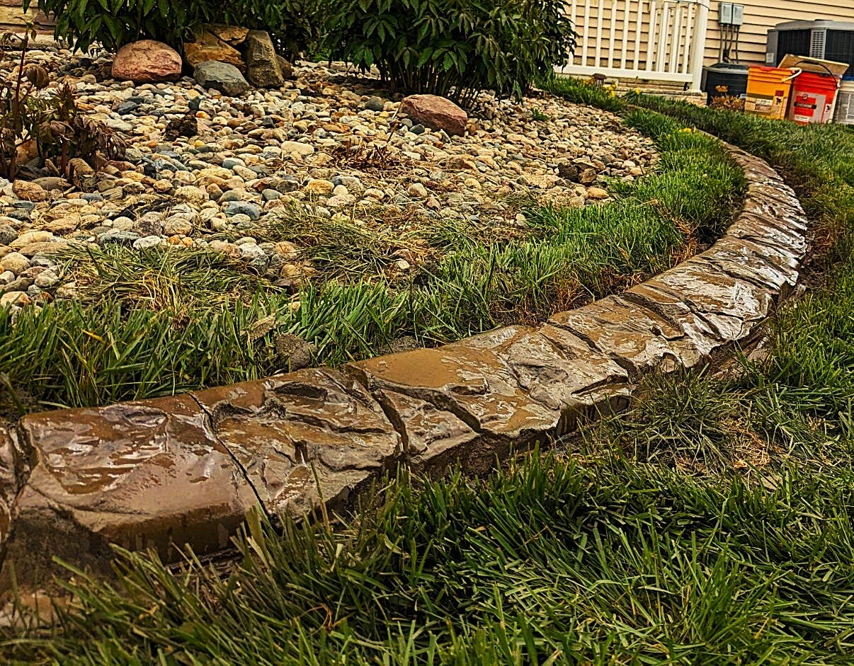 Discover the unparalleled craftsmanship of Roundhouse Curbs. We pride ourselves on creating custom decorative concrete curbing that not only beautifies your landscape but also solves common yard maintenance and water drainage challenges. Explore our diverse portfolio, showcasing a wide range of textures, applications, and innovative solutions tailored to transform any outdoor space in eastern Nebraska.
